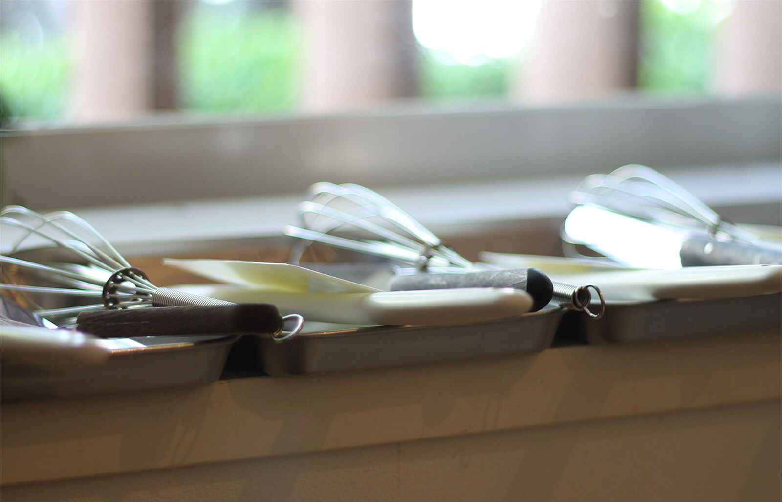 お菓子作りの教室では、動きやすさと清潔感、そして空間との調和がとても大切です。